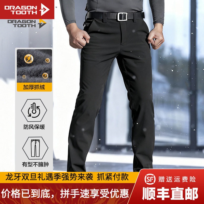 The second generation of dragon teeth hidden fierce warm softshell pants slim trousers with fleece in winter and thickened windproof warm pants for men