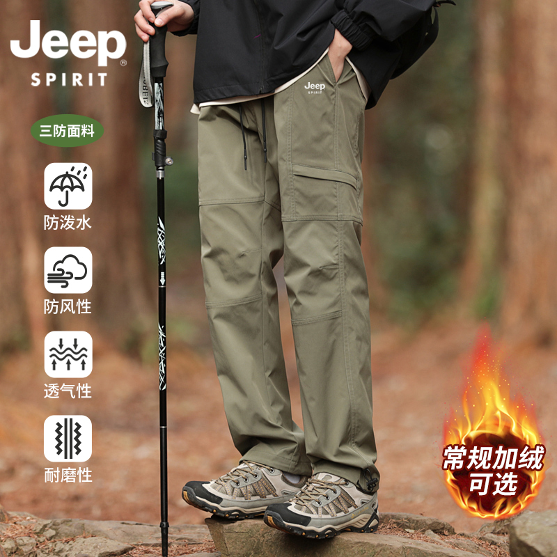 Jeep pants, men's outdoor autumn and winter thickened fleece men's pants, waterproof pants, windproof pants, men's cargo pants