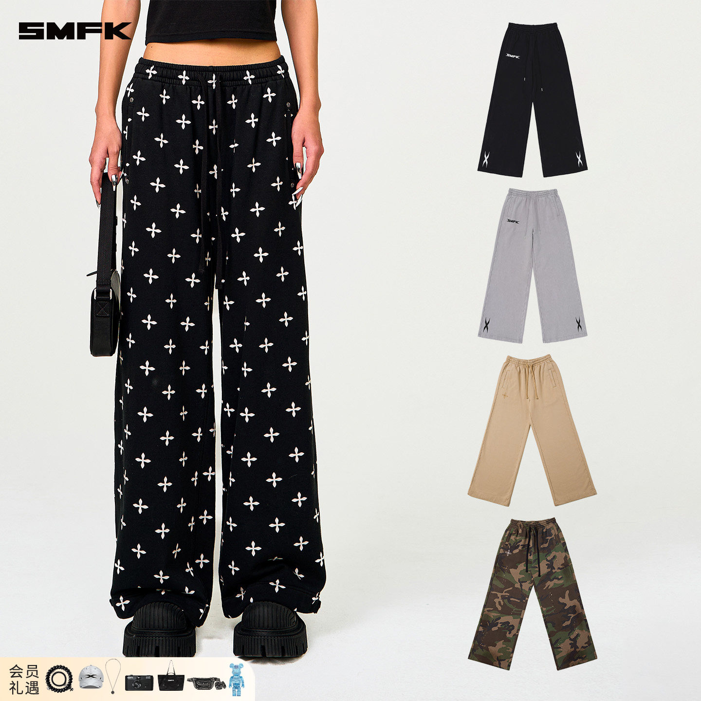 SMFK Black Garden Wide-leg Sweatpants P0009BG A collection of the same style of full-printed cross-flowered loose slacks with the star