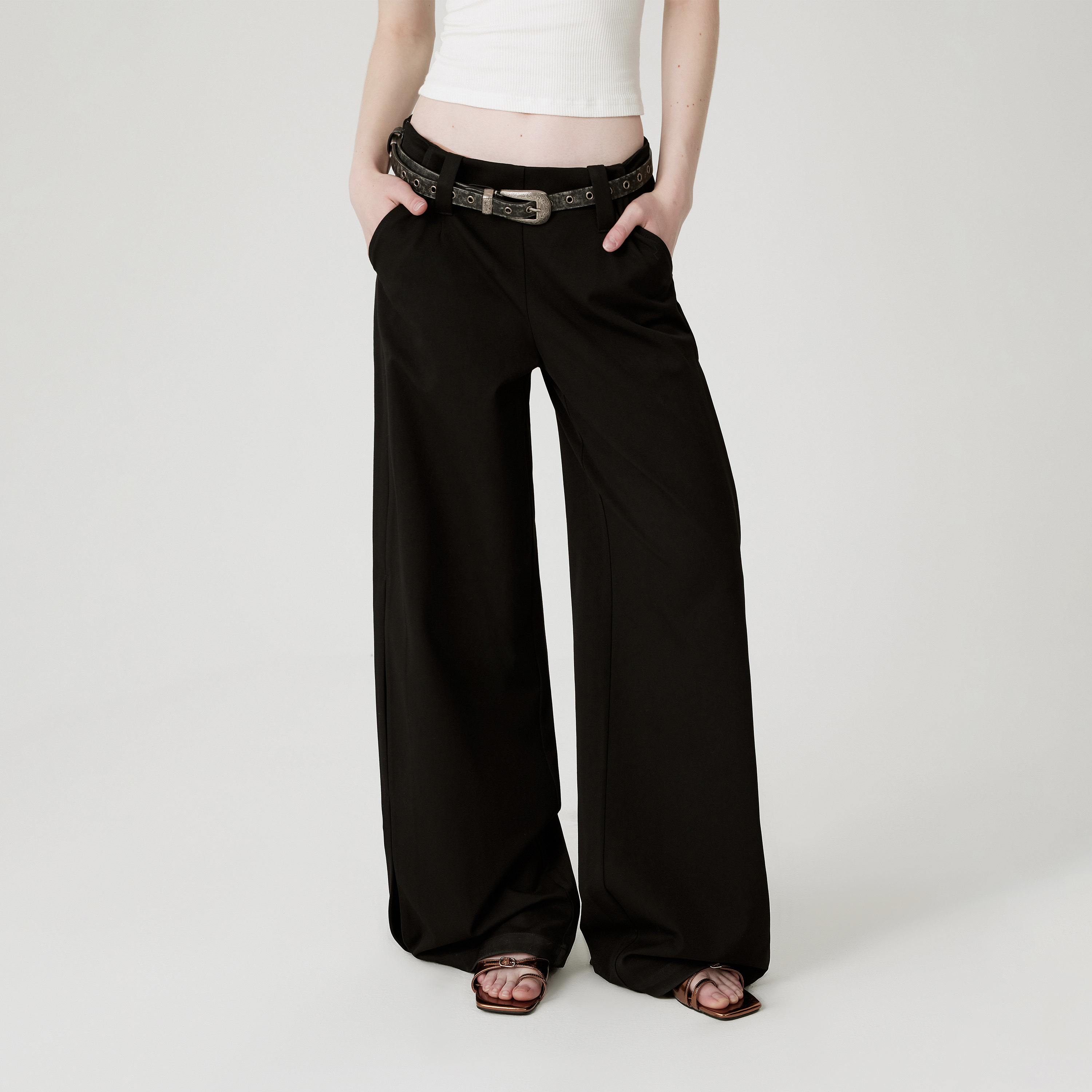 Escape from Chigang West Original high-end drape black suit pants women's loose casual low-waisted wide-leg pants