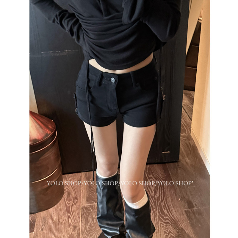 YOLO SHOP [Versatile Comfort Zone] Black design hot girl high-waisted hip wrapping stretch denim shorts