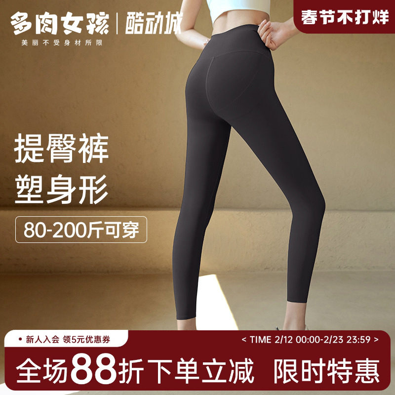 Fat mm plus size yoga pants, women's sports, high-waisted hip lift, shark pants, stretch abdominal tucking, running, fitness pants, trousers