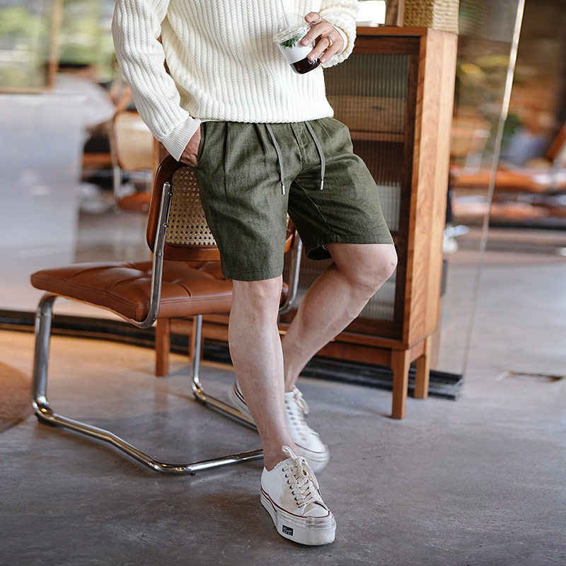 Japanese retro fashion, versatile light luxury linen solid color shorts, men's summer trend, new comfortable and breathable cropped pants