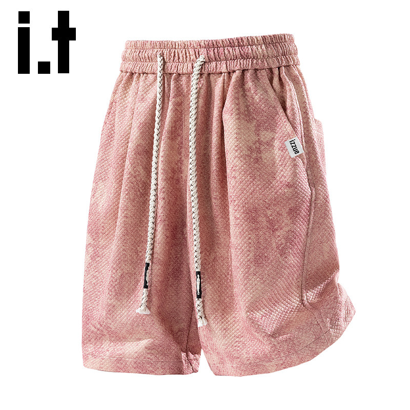 it izzue pink shorts men's loose American casual trousers summer thin trend wear cropped pants Y