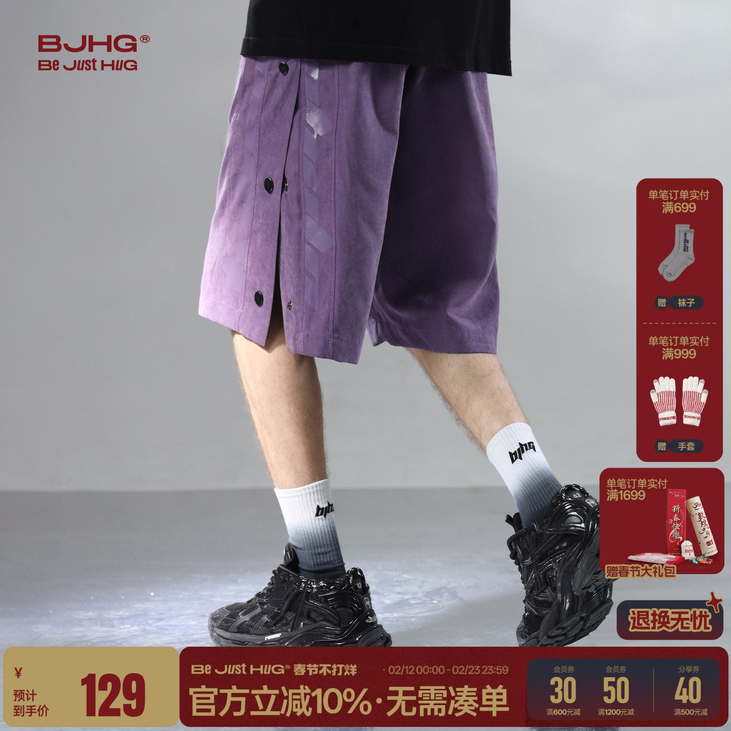 BJHG recklessly light sports shorts, men's summer pants, trendy purple loose cropped pants