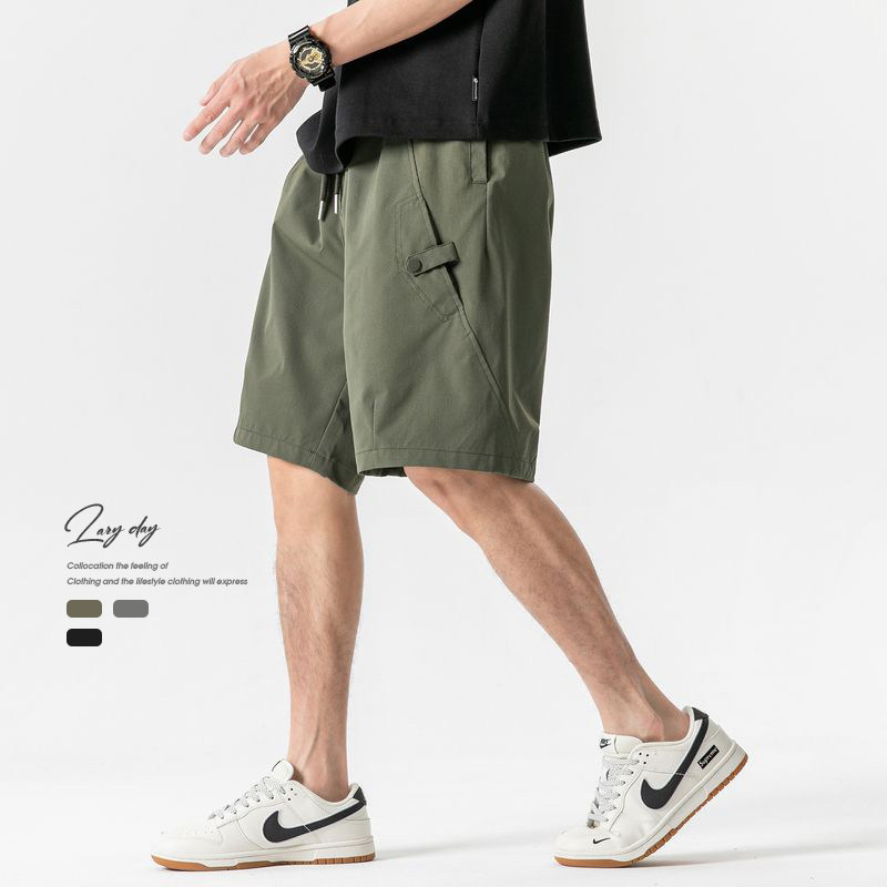 LAZY DAY Original Men's Japanese Solid Color Embroidered Cargo Shorts Men's Summer Loose Thin Quick Drying Cropped Pants