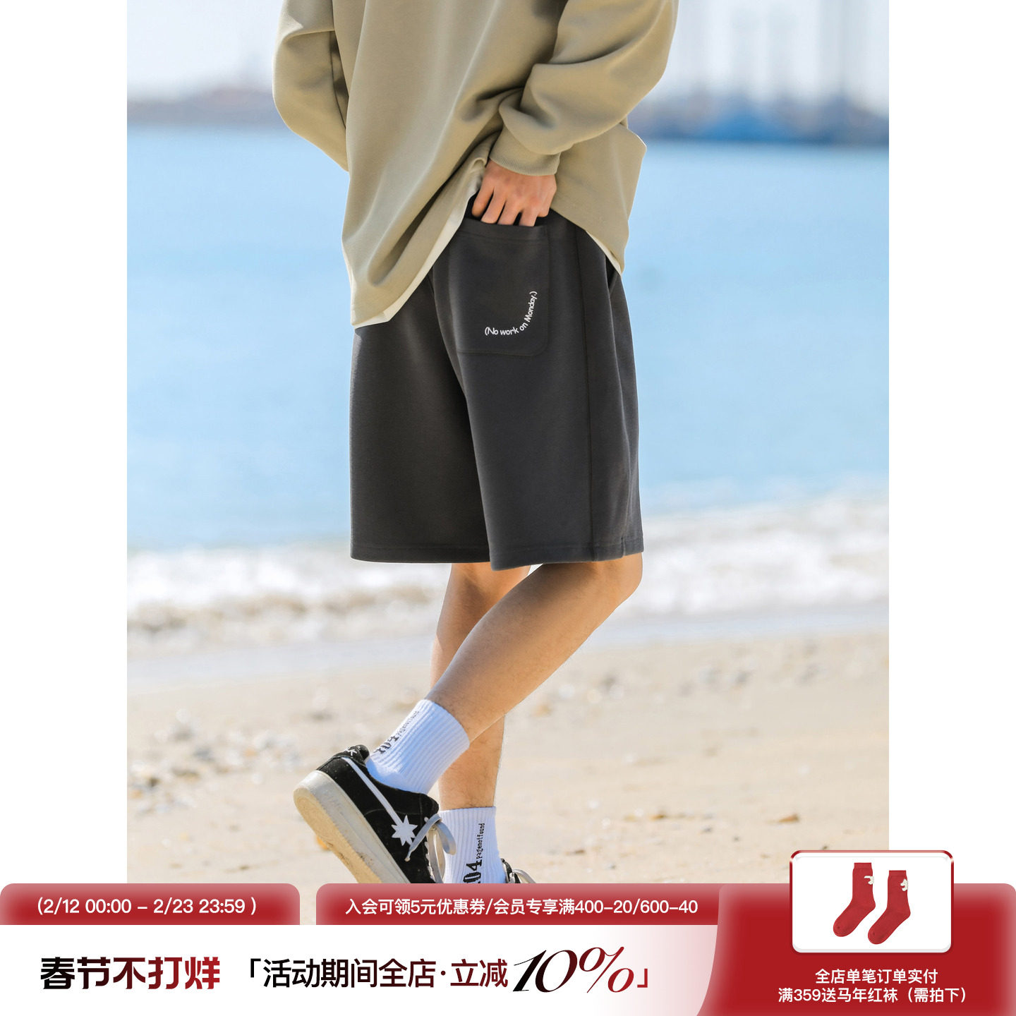 Lu Xiaohu heavy 310g pique fabric breathable shorts men's summer elastic waist drawstring sweatpants sports cropped pants