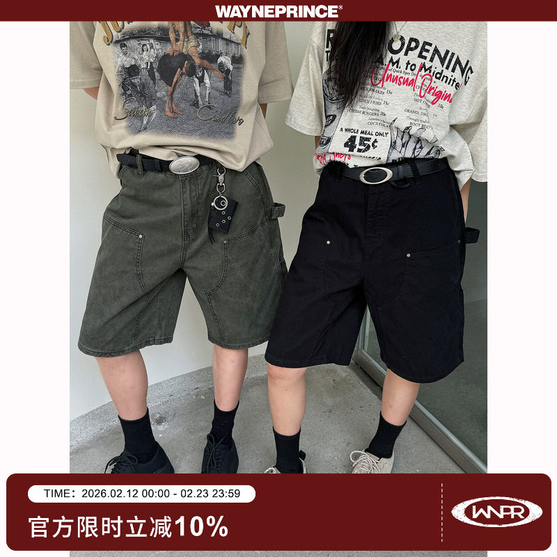19studio WAYNEPRINCE washed distressed multi-pocket logging pants workwear loose wide-leg casual shorts