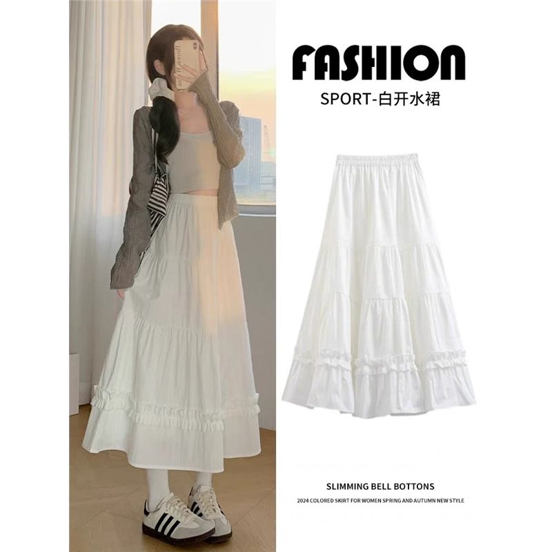Layered fungus lace skirt women's 2025 spring/summer design sense Versatile mid-length skirt elastic waist A-line skirt