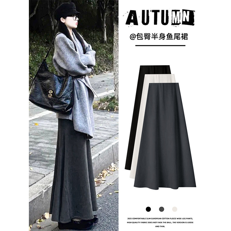 Black mermaid skirt women's autumn and winter long skirt 2025 new fleece high-waisted A-line hip skirt slimming knitted skirt