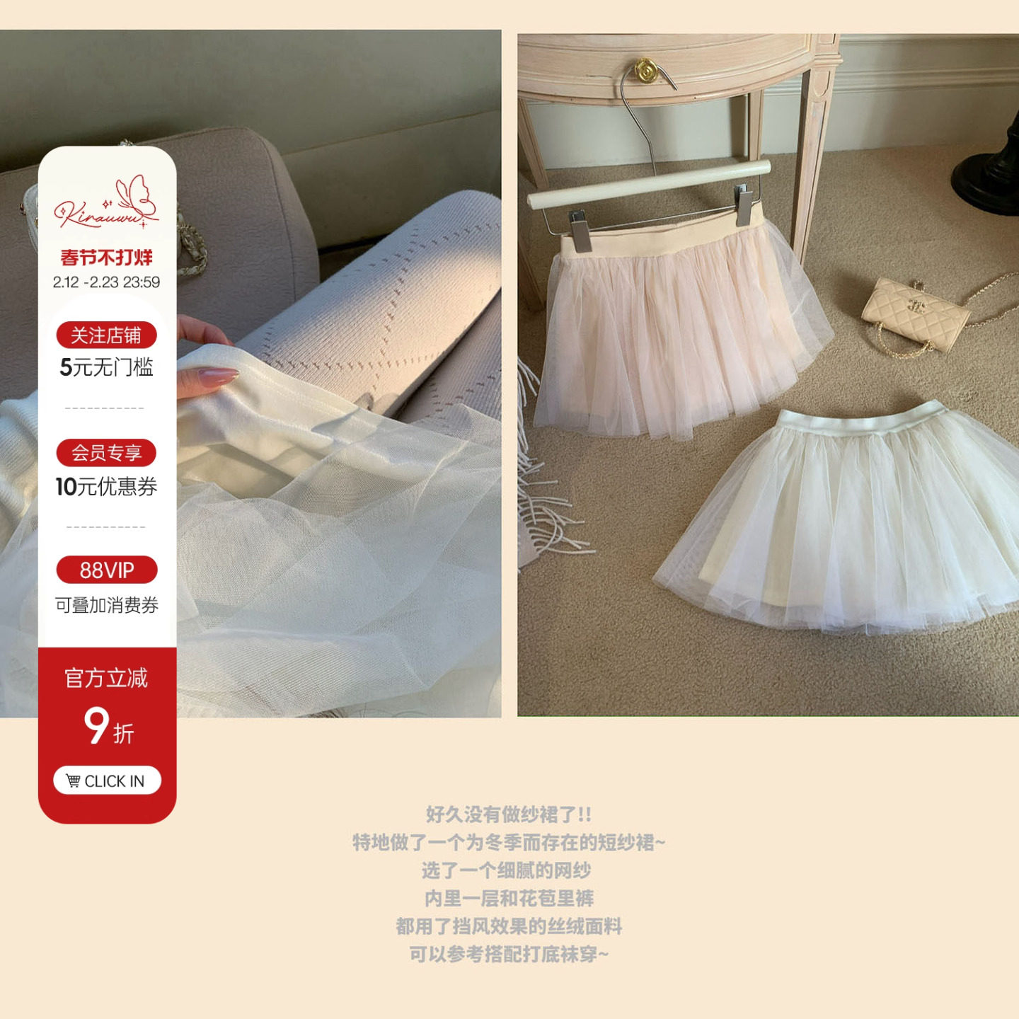 Lukira [Moon Shadow Glass] Solid color ballet style mesh skirt women's autumn and winter A-line puffy short skirt long skirt