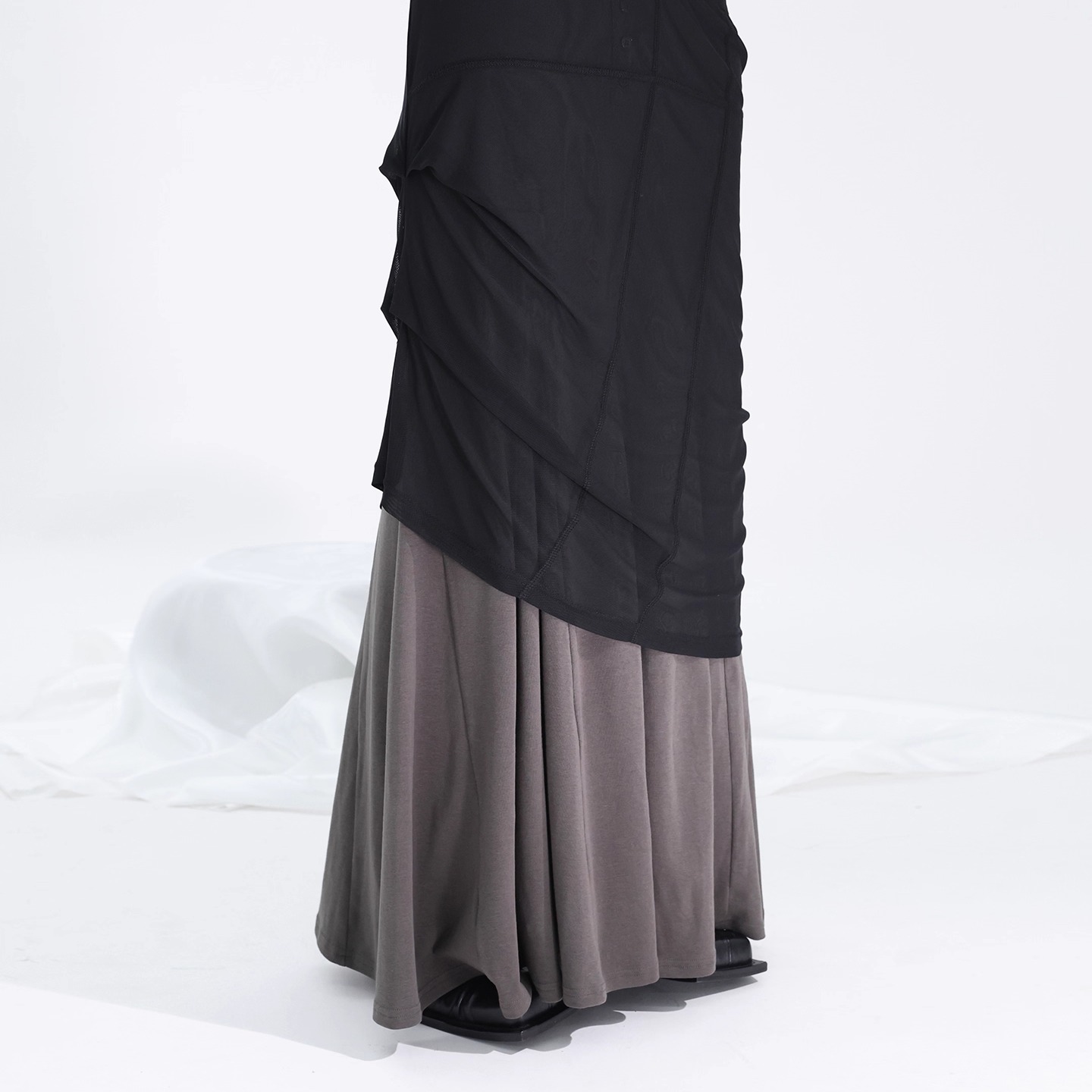 Beauty FUZZYKON original design black brown subculture mesh cotton stretch hip-hugging mermaid double skirt