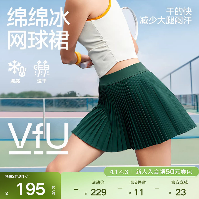 VfU sports pleated skirt tennis short skirt women's fake two anti-stripped spring and summer white skirt tennis uniform skirt