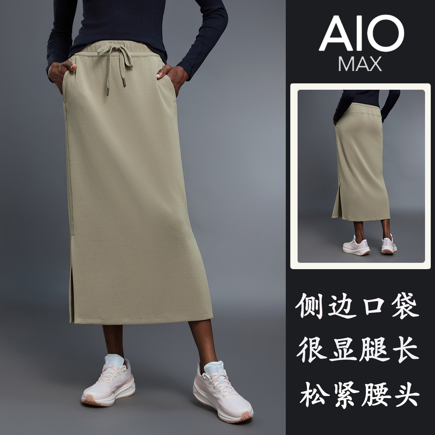 American sports skirts, high-waisted slimming, high-end slit straight hip-hugging skirts, versatile casual midi skirts, wear outside