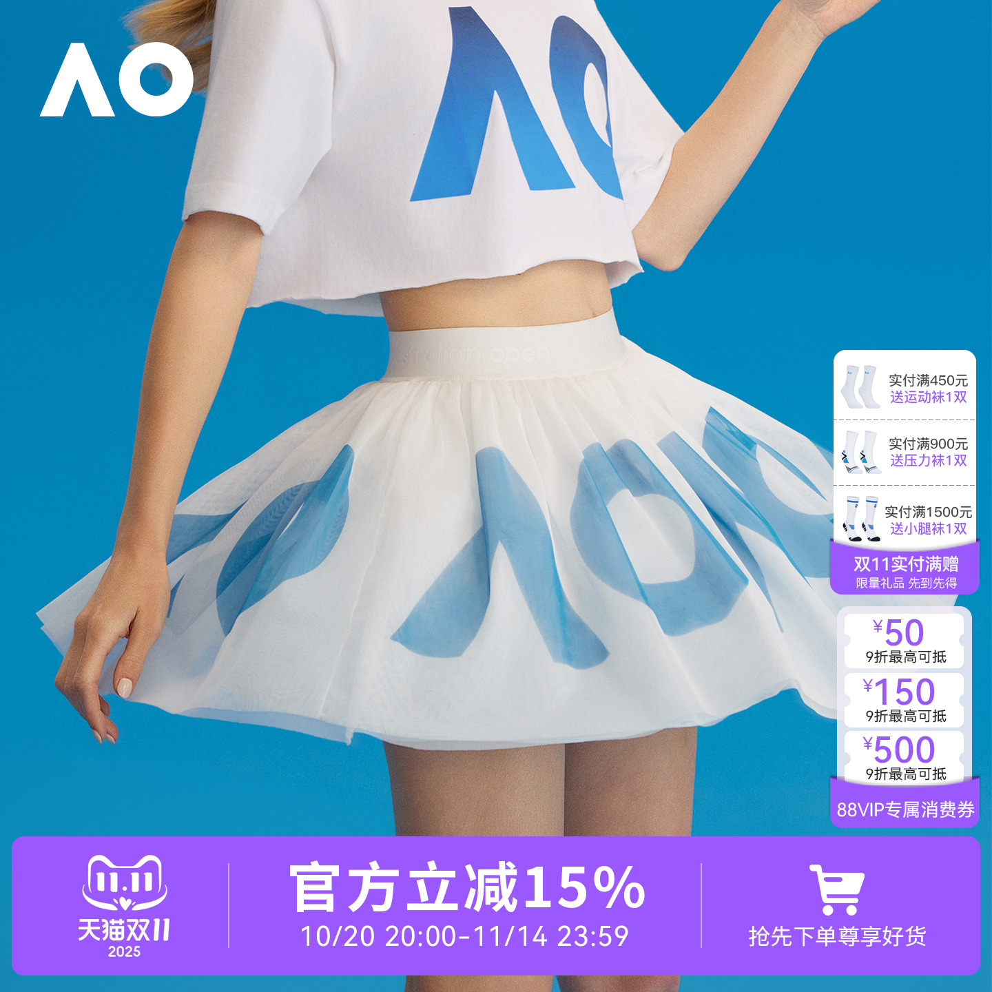 AO Australian Open sports skirt gradient tennis skirt tennis skirt women's anti-naked skirt skirt with underwear pleated skirt