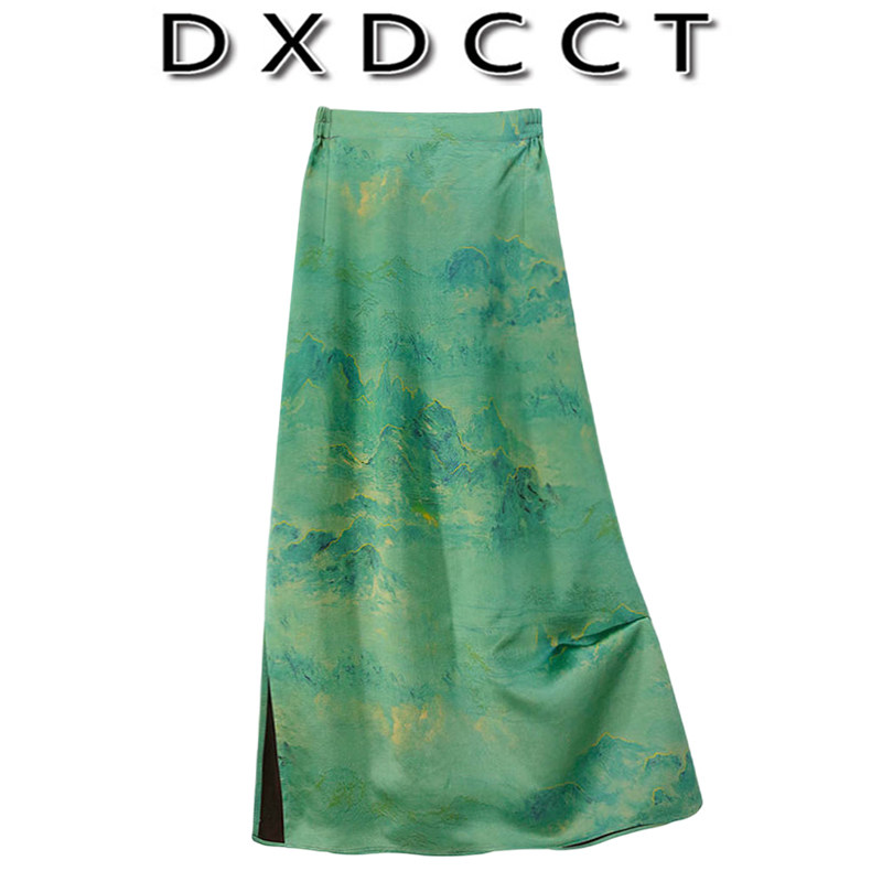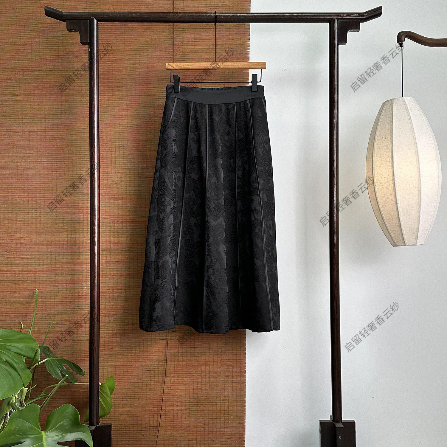 Xizi/[Lou Taihui] New Chinese Tencel gold and silver jacquard micro A high-waisted slimming skirt/BQBH2602