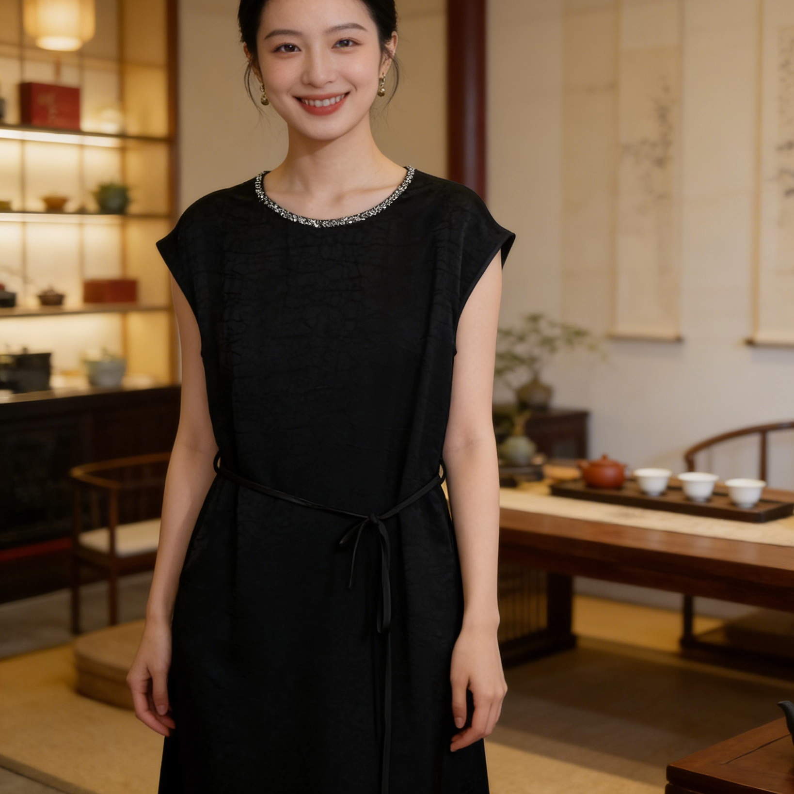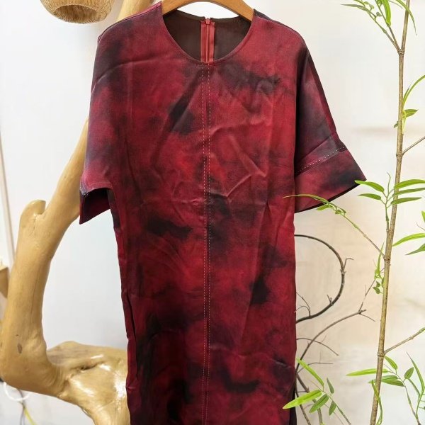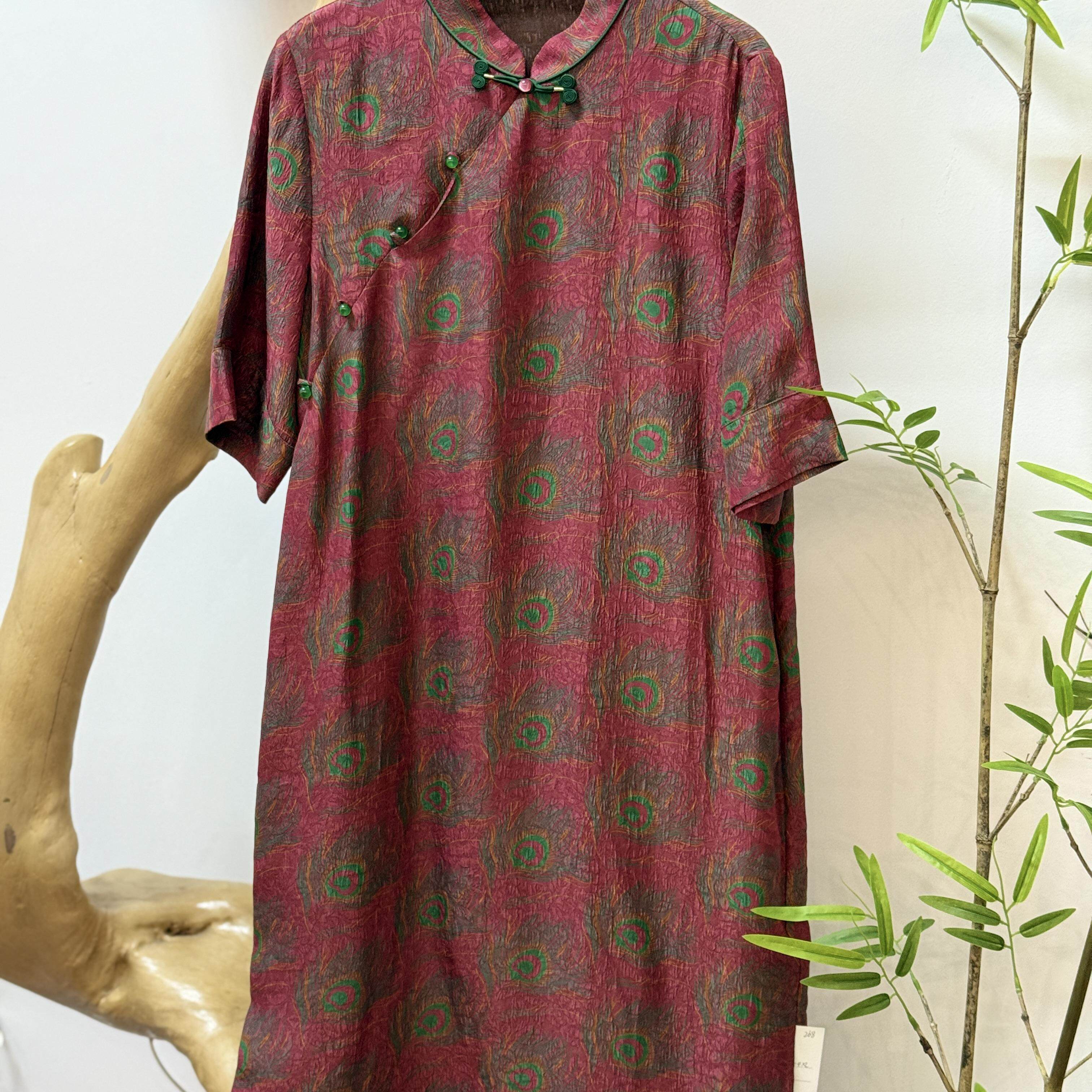 100 mulberry silk chicken blood vine crew neck jacquard old material 48 moomi dress mid-length