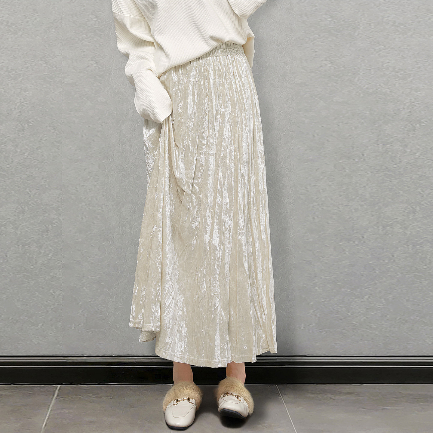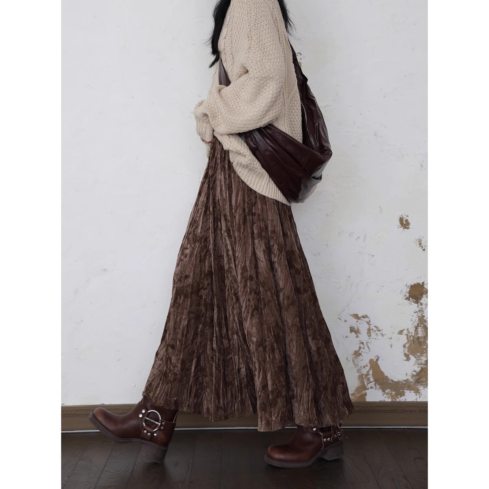 Outlet clearance scissor tail goods vintage pleated thickened velvet A-line skirt female high waist slim long skirt
