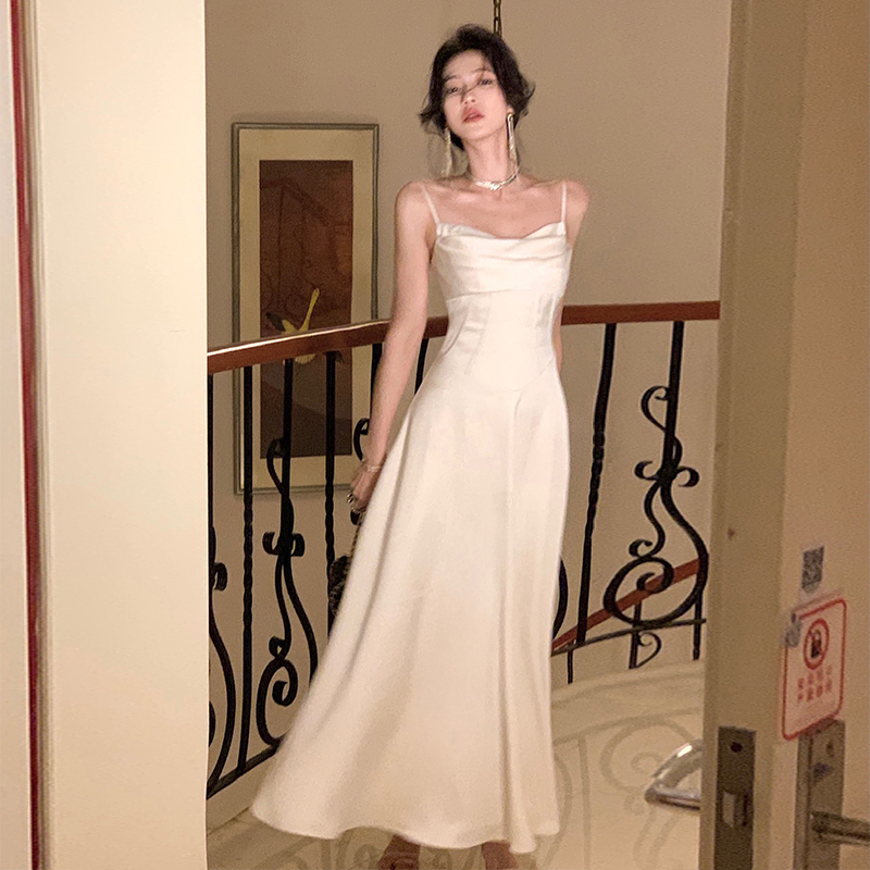From a moment [Siren] white camisole dress women's 2025 new satin slimming waist high-end skirt