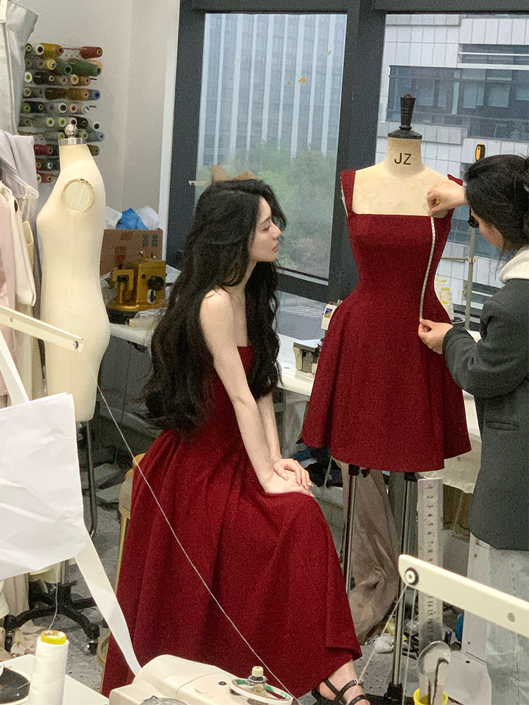 Dust Deng Deng Heavy Industry Design Sundress 2025 Autumn and Winter New High-end Bandew Skirt Birthday Skirt