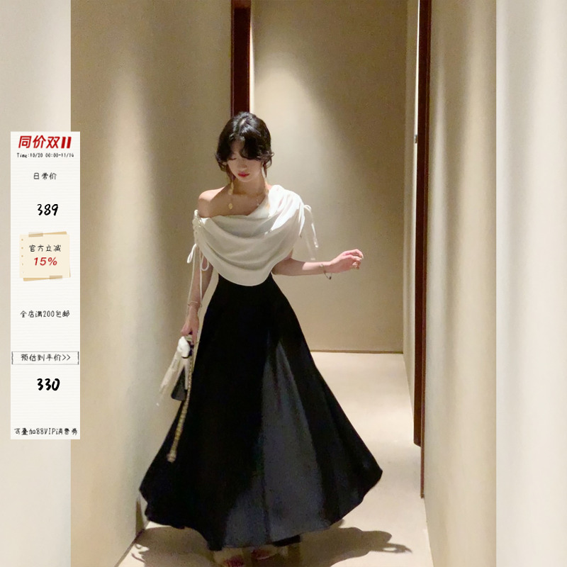 One-shoulder black slim dress women's early autumn 2025 new sexy hot girl royal sister style hip-hugging skirt