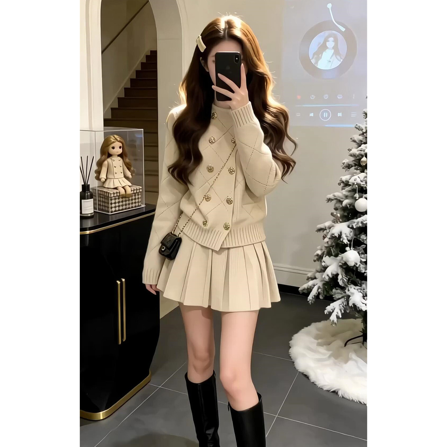 2026 new daughter small man fragrant knitted dress women's early spring short skirt Korean outfit complete set