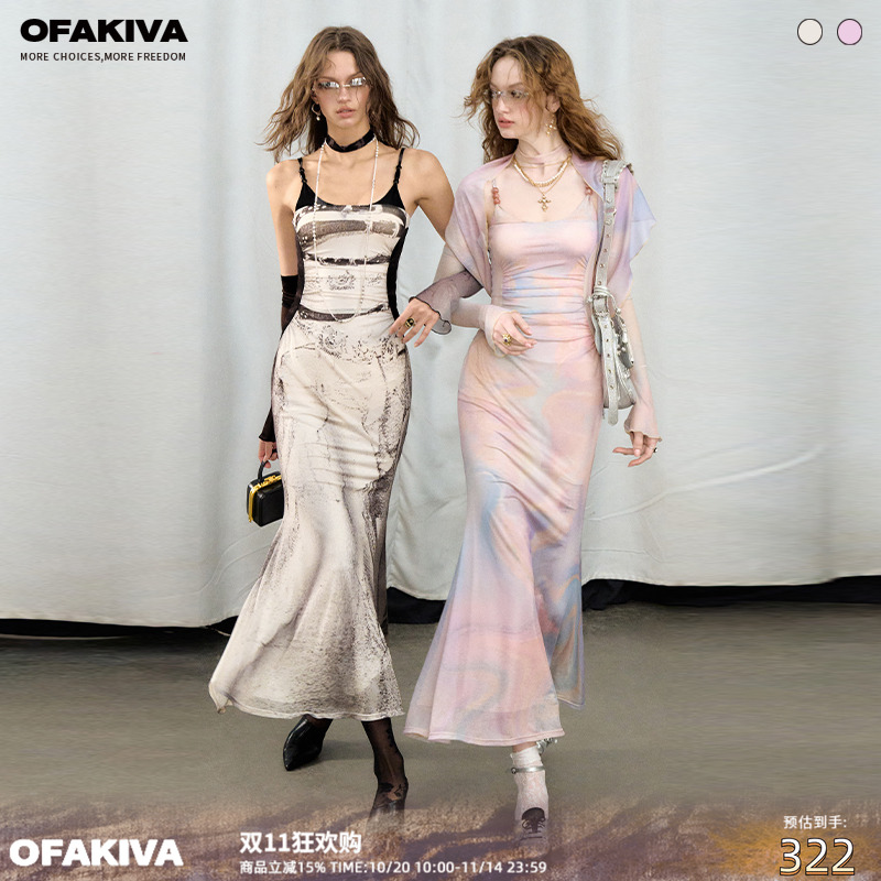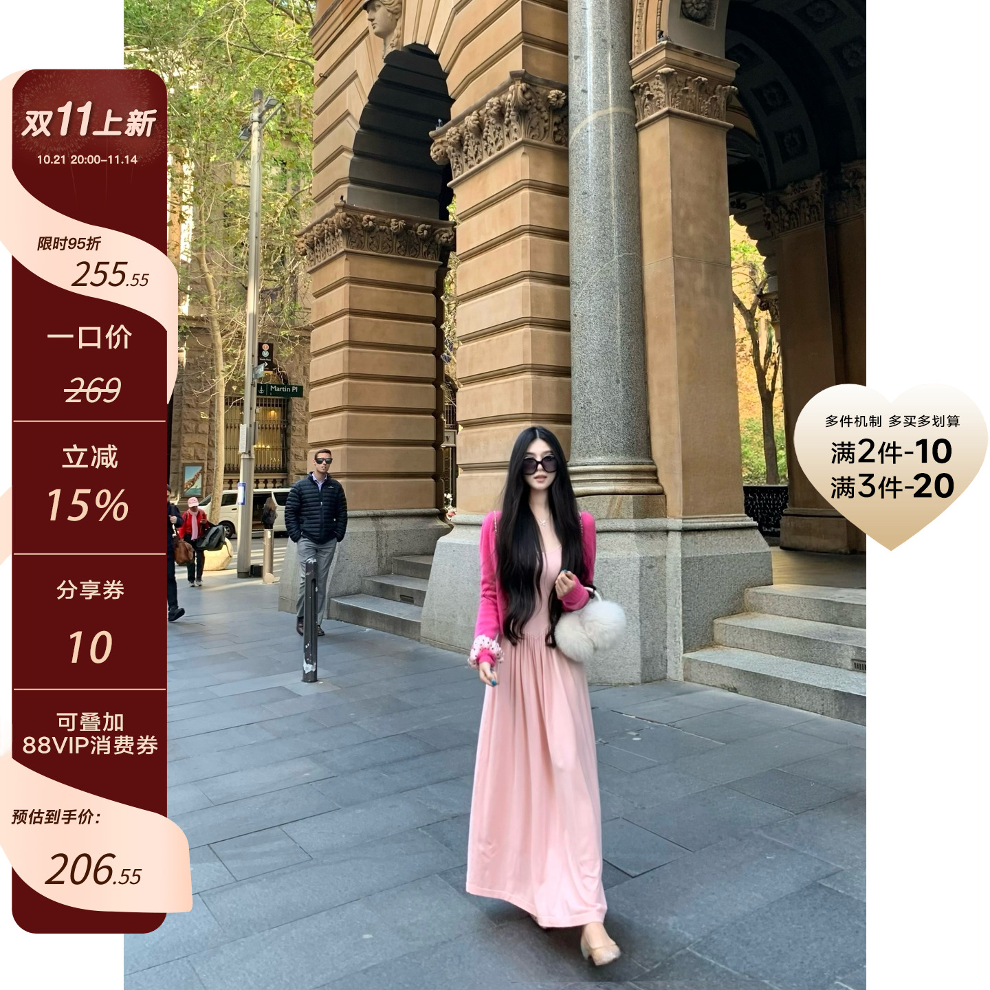 【Papi Same Style】Semi-training with chest pad sundress, pure desire temperament, halterneck dress, black skirt, pink long skirt