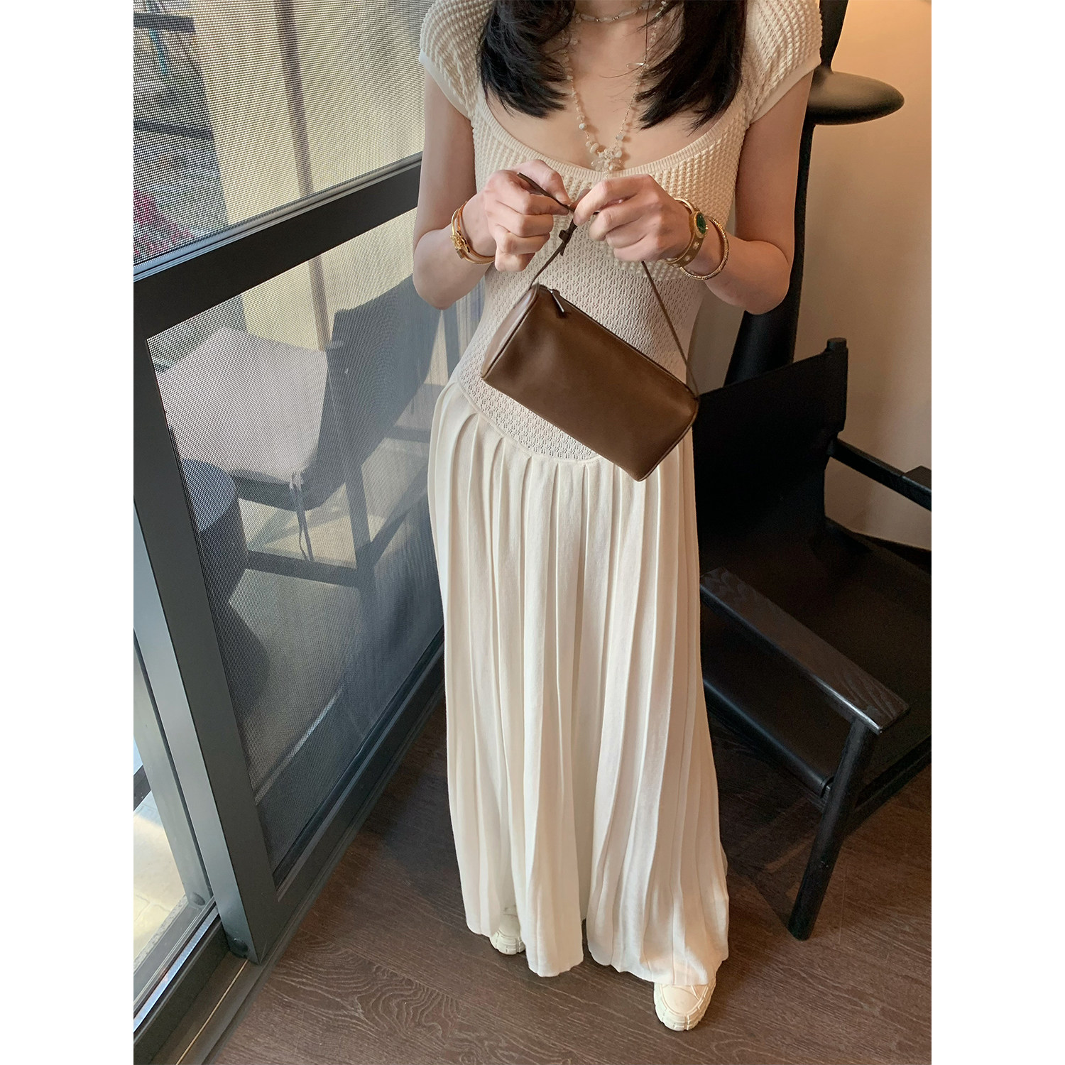 ASM ANNA/Premium French Gentle Wind Mercerized Wool Combed Cotton Acetate Long Skirt Tencel Square Neck Dress