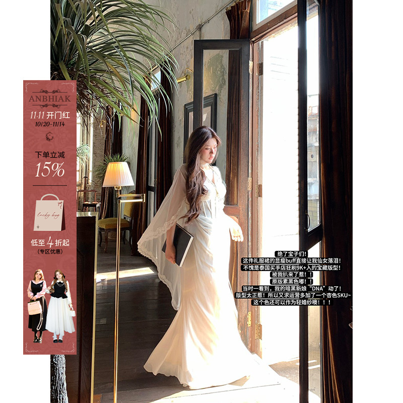 From a moment [Creator God] white halterneck camisole dress women's summer satin fishtail high-end long skirt