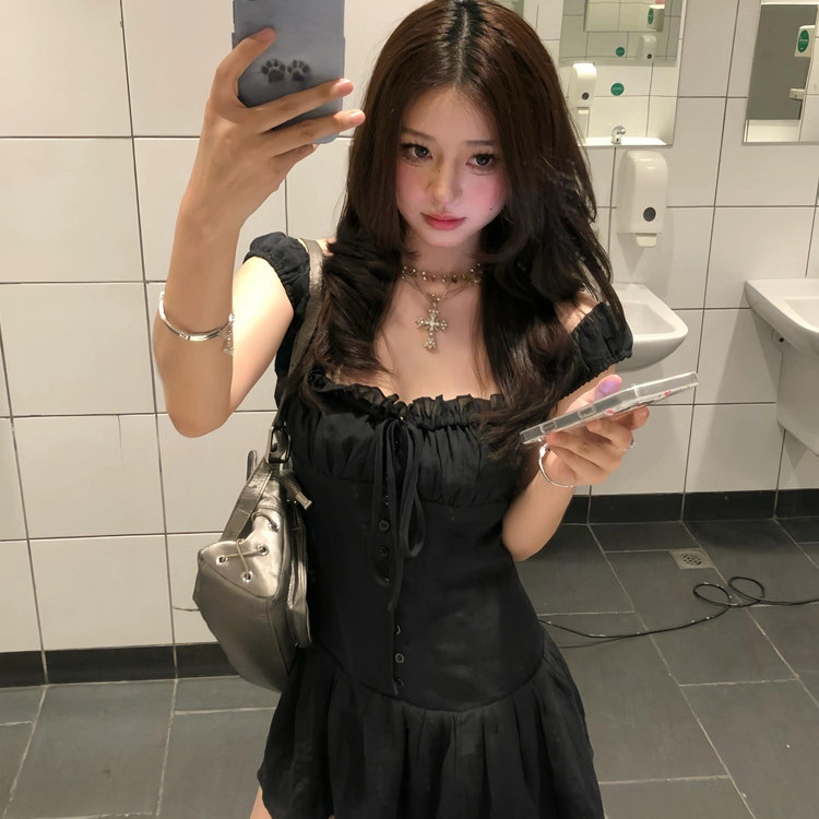 Tencel bamboo joint French square neck slip dress women's new summer girlish temperament waist slimming short skirt