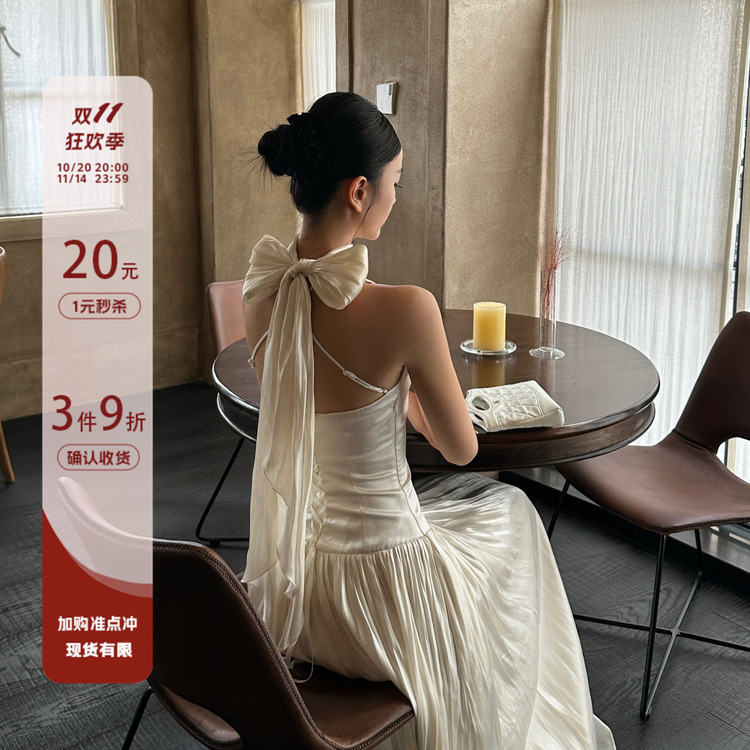 VENUIE French halterneck dress can be worn daily for engagement evening birthday small light dress skirt temperament beautiful long skirt