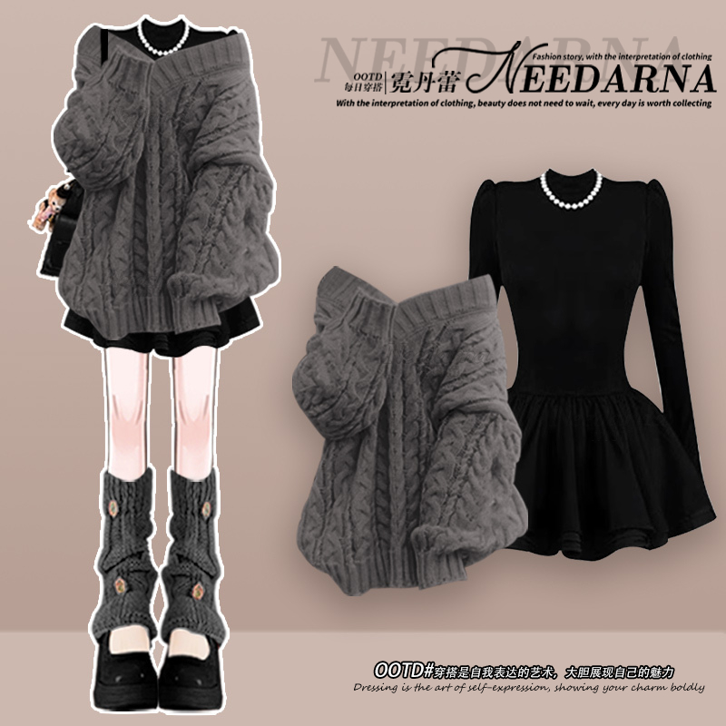 Miu in miu wear knitted sweater skirt autumn and winter slightly chubby pinched waist skirt luxury sense daughter dress woman
