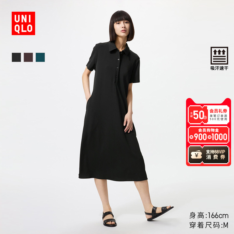 Uniqlo Women's Knitted POLO Dress Short Sleeve Skirt Slim Commuter 480635