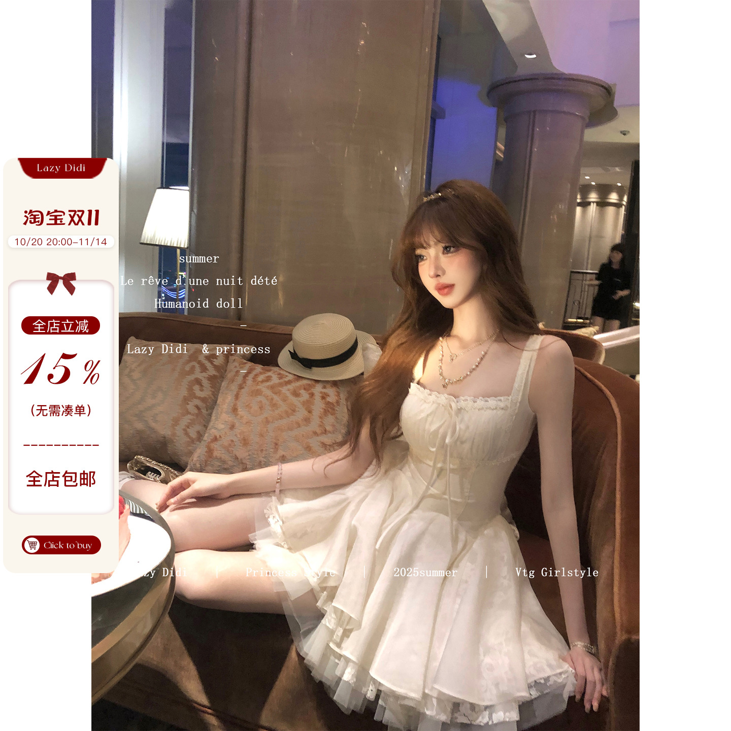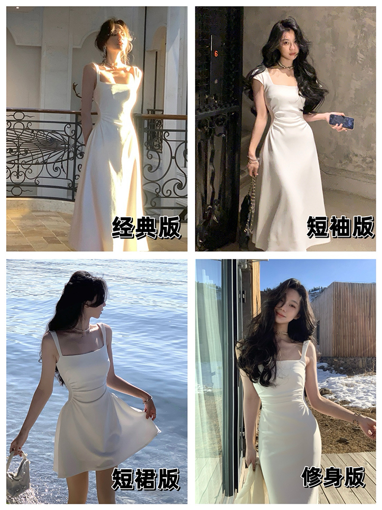 From a moment of white camisole dress 2025 women's new square neck French waist niche certificate dress