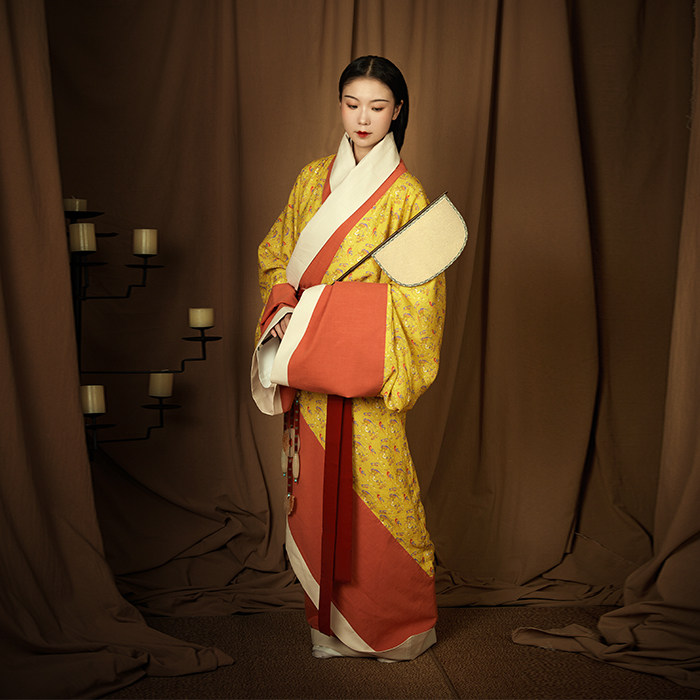 Silk Hanfu Western Han Dynasty Restoration Mawangdui Original Yellow Printed Curved Robe - Chu Yuji