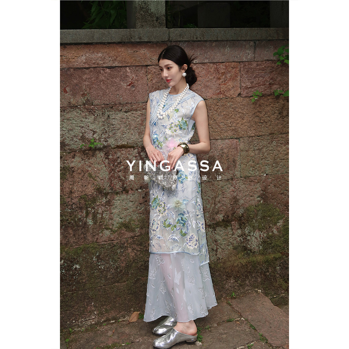 Zhou Xinxin YINGASSA [Yutang Fugui] summer style national style heavy industry nail bead embroidery handmade nail bead dress