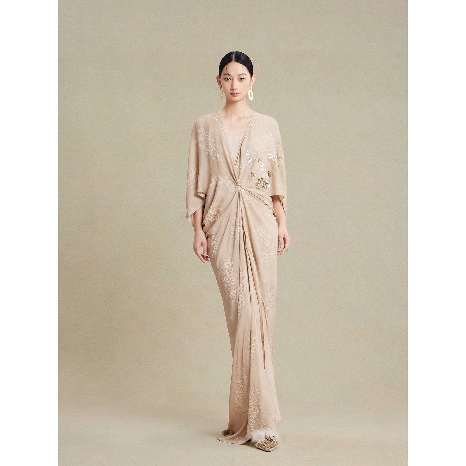 Nian Twelve [Flower Dynasty Festival] silk jacquard nail bead waist dress silhouette three-dimensional cut deconstruct long skirt