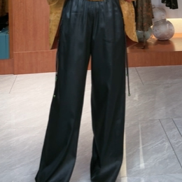88 A touch of blue selection 2025 new black oil leather old material tassel fragrant cloud gauze straight-leg pants 26861