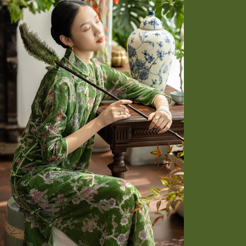2024 New JCL1501 Velvet Sundress Spring and summer tea robe with a Chinese retro cheongsam dress