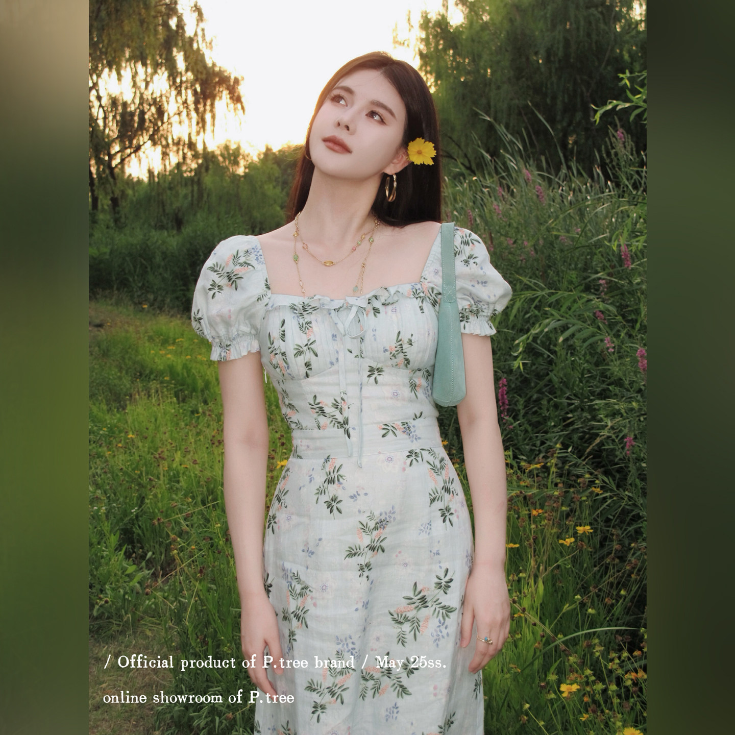 P.tree "Mint Coast in Nice" linen romantic print French dress