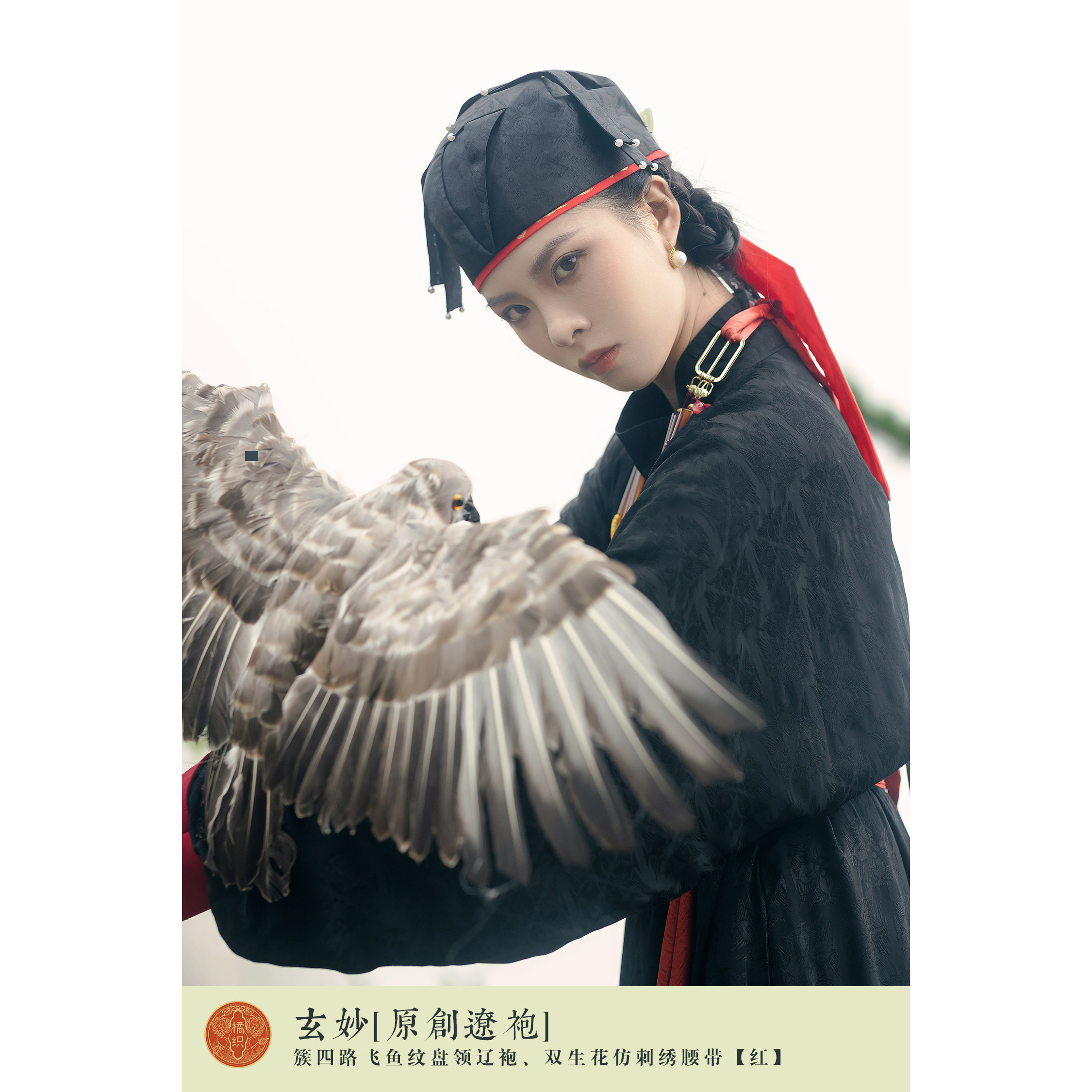 [Mysterious] cluster of four flying fish patterns, silk people, cotton coiled collars, inserted Khitan robes, narrow-sleeved ethnic style robes, Liao robes