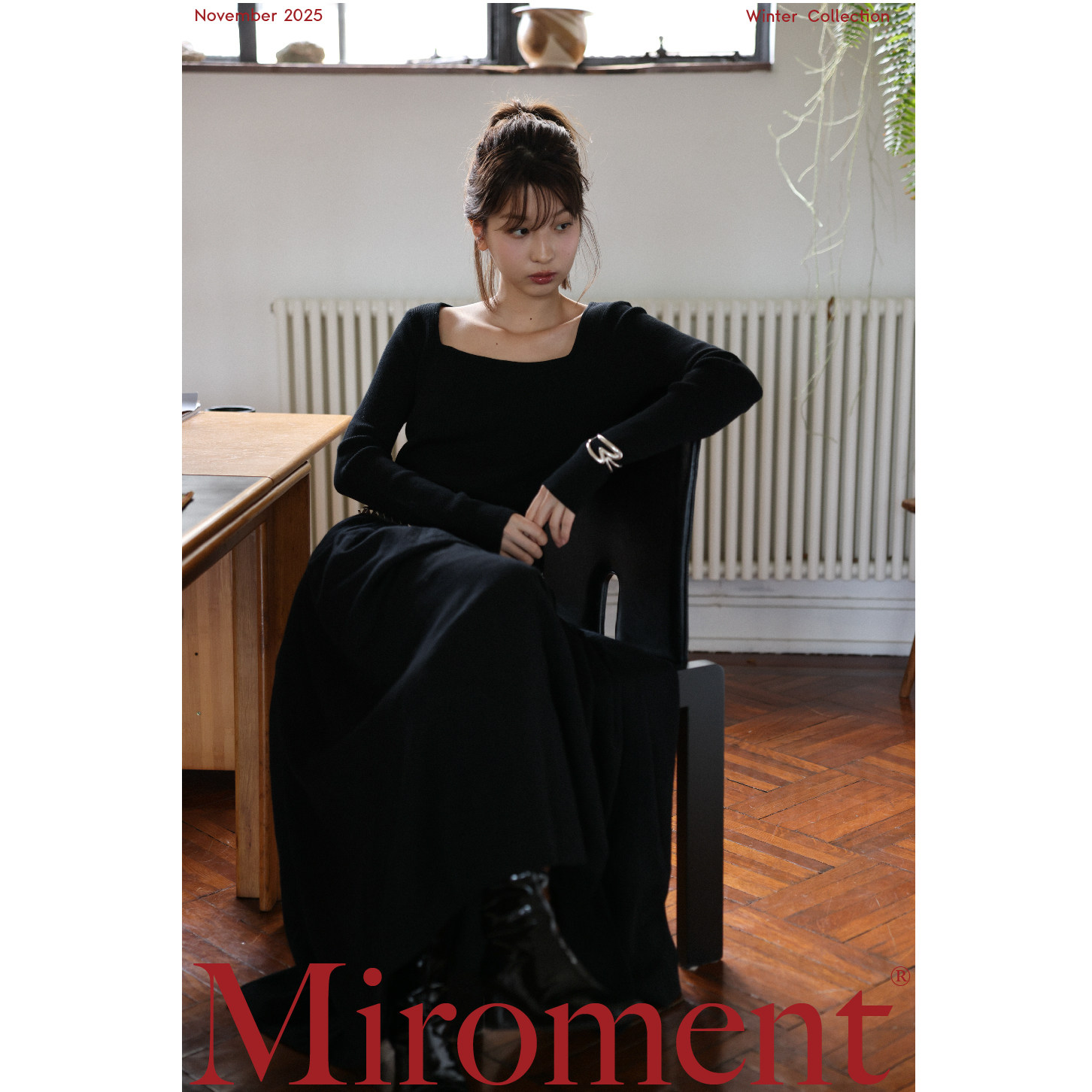 Miroment Black Swan Dancer Elegant Neck Square Neck Cardigan Stitched Lightweight Hem Long Dress