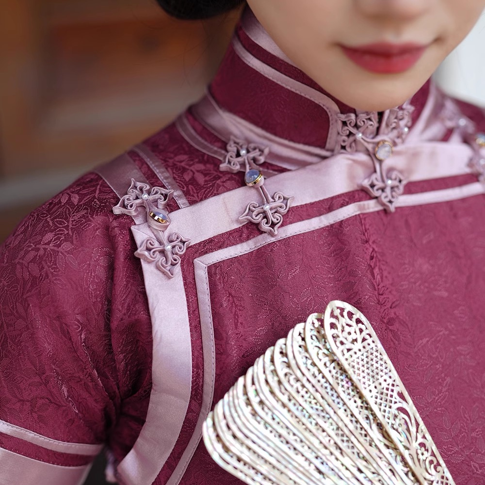 Plum color | Limited time appreciation Nantian pattern flat-cut cheongsam silk blend 30S non-machine washable 29 mumi