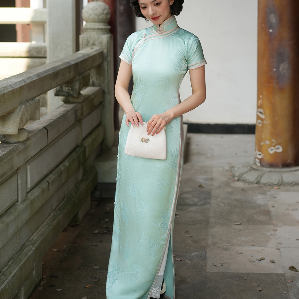Beautiful spring scene丨A city of fluff丨Spring and summer silk retro double placket buckle Republic of China style traditional one-piece cheongsam