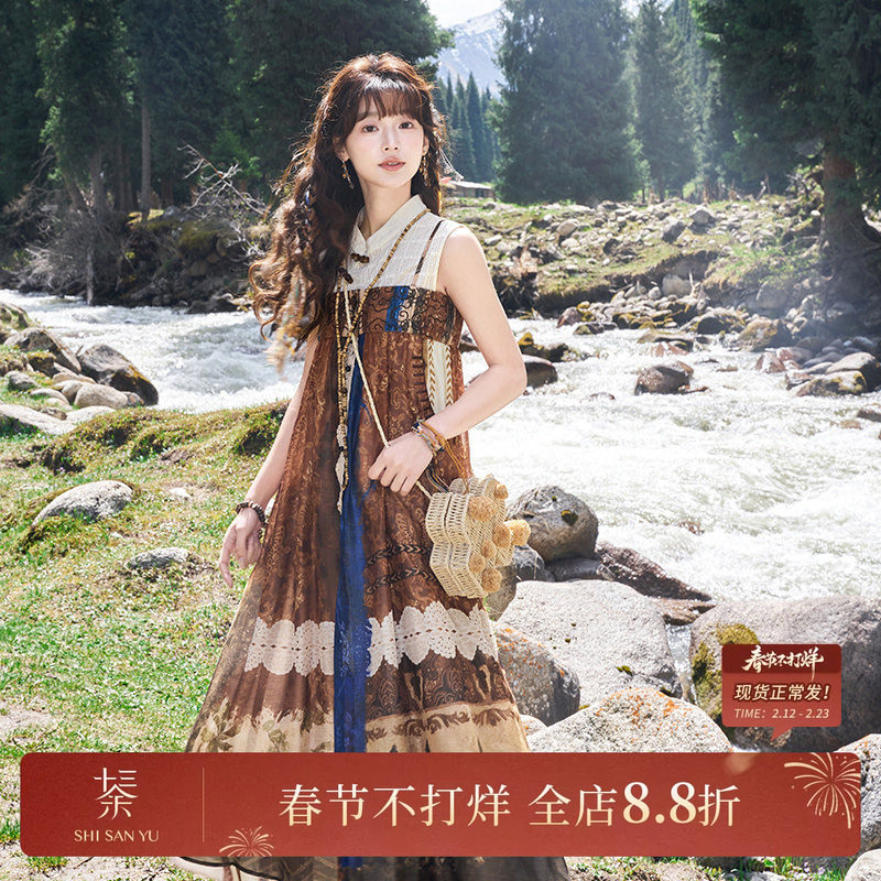 Thirteen more cardamom [Dan Valley] 2025 new summer daily outing national style slip cover dress set