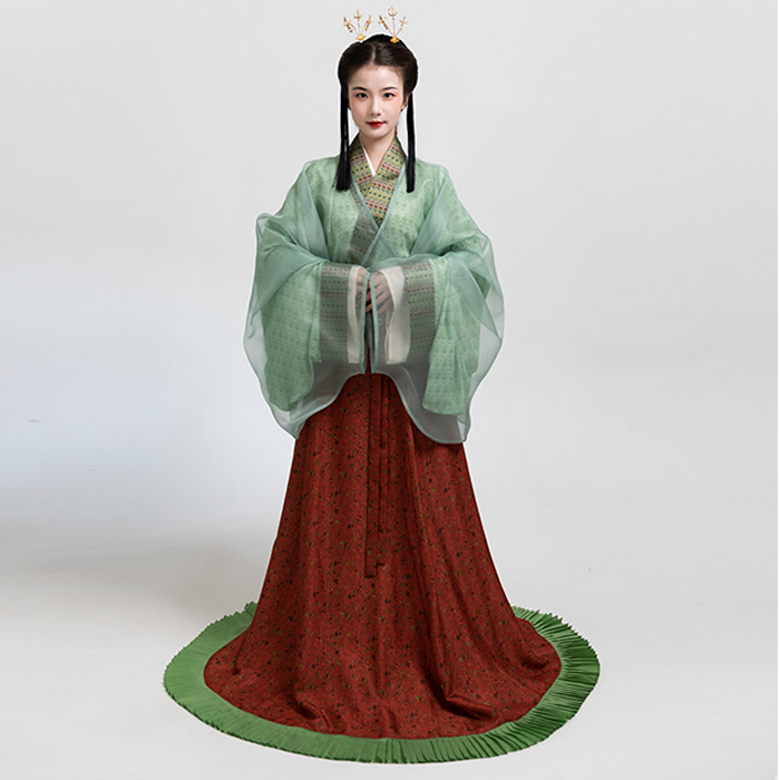 Han and Jin Dynasty Restoration Hanfu Silk Print Cross-Collared Skirt Gauze Clothes - Qiongju (Green)