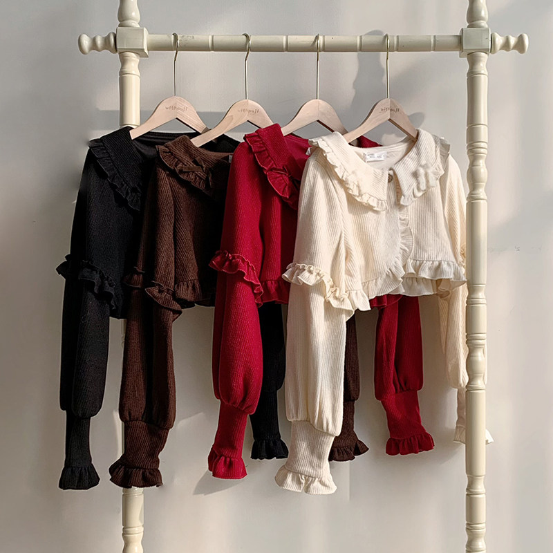 [pine cone] withpuji original design four-color doll collar short knit cardigan autumn and winter lolita matching