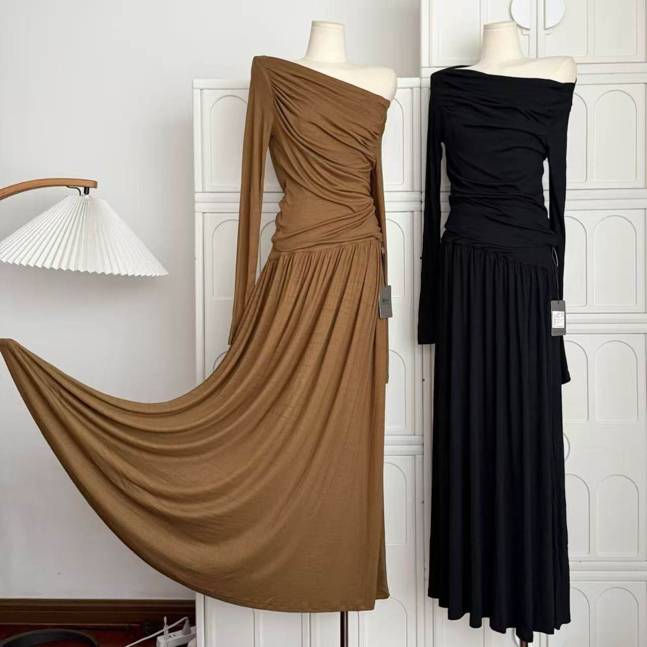 Peach homemade - design pleated long-sleeved T-shirt set light mature niche atmosphere skirt two-piece set