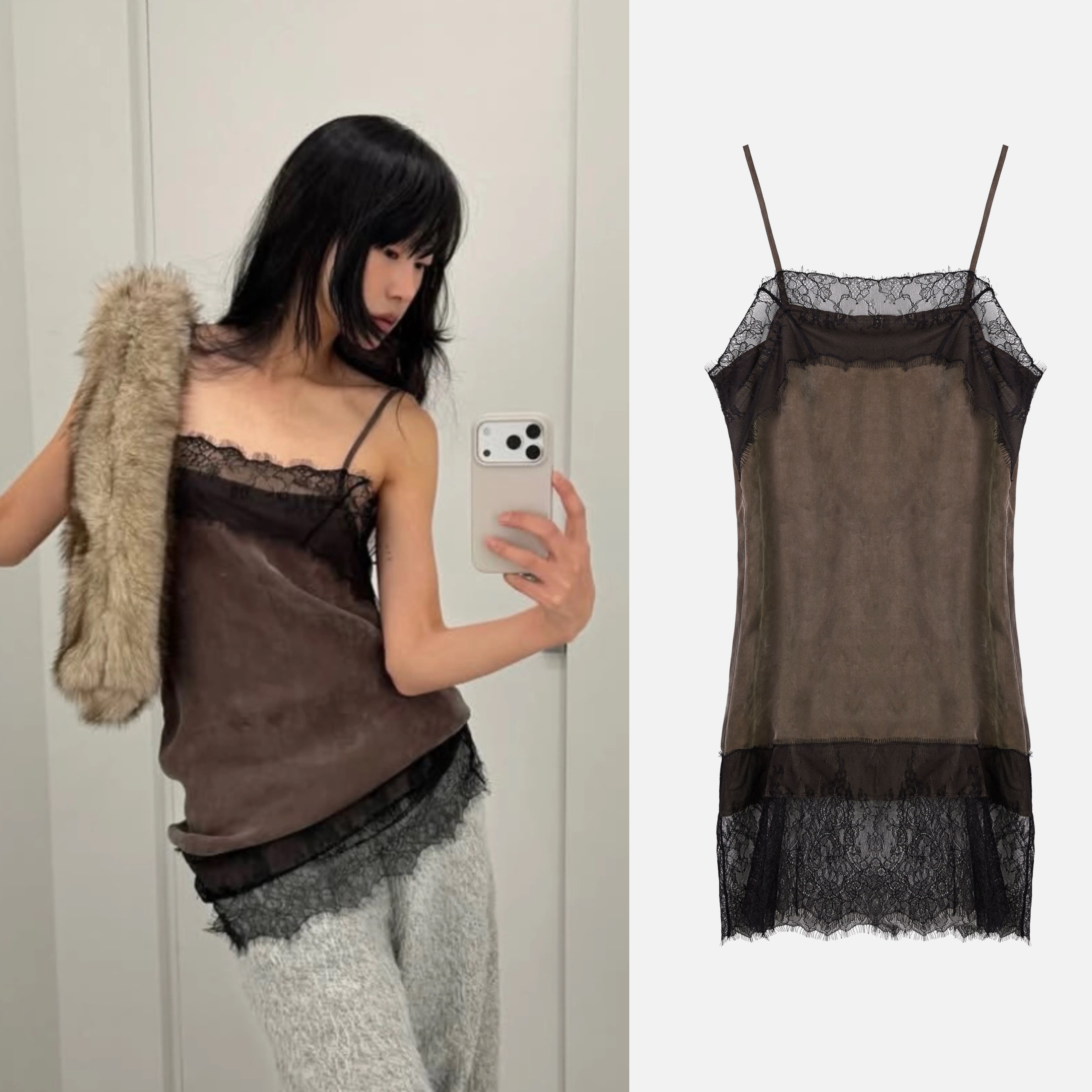 Cerric has the same Korean niche design 25 autumn and winter new lace pajama style sundress dress short skirt