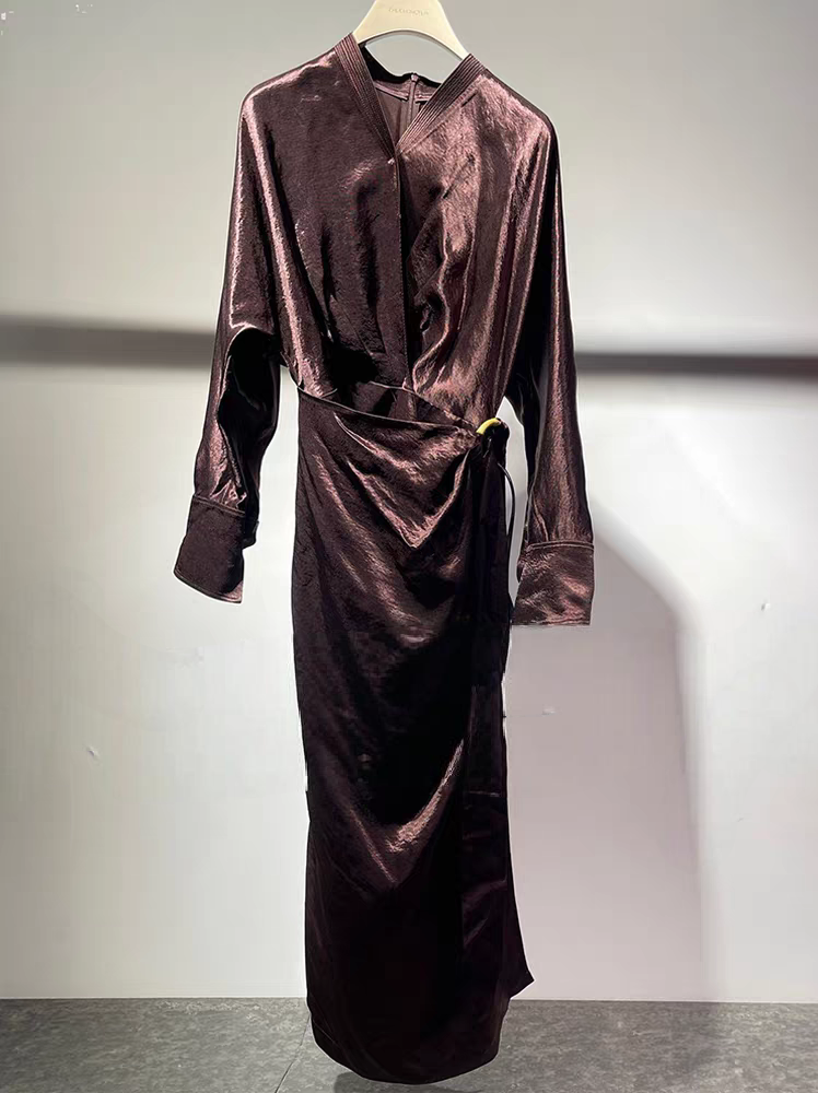 2025 new products PSL1913 silk velvet crew neck, beaded edge, tea robe, awakening clothes, long-sleeved cheongsam dress, women